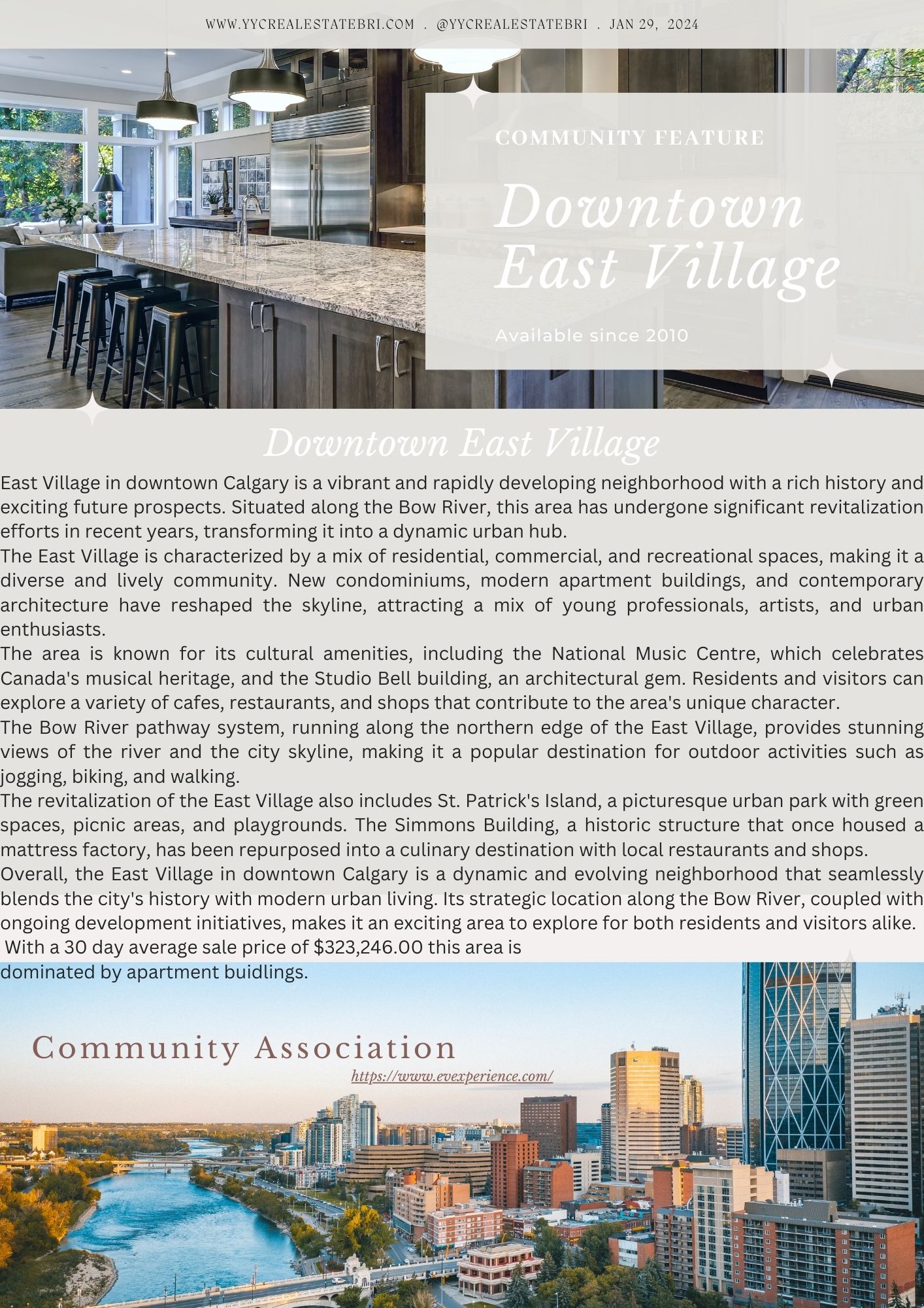 Embrace urban living at its finest in this chic one-bedroom plus den apartment located in the heart of East Village. A perfect blend of style and functionality, this residence features a well-designed floor plan that includes a spacious bedroom, a versatile den that can be used as a home office or guest room, and a modern bathroom with heated flooring. The open-concept kitchen is equipped with contemporary appliances, providing an ideal space for both cooking and entertaining. Large windows flood the living area with natural light, creating a bright and inviting atmosphere. Noteworthy is the inclusion of air conditioning, ensuring comfort during all seasons. Enjoy the convenience of the Evolution buildings amenities and the luxury of residing in a vibrant community that offers easy access to local shops, dining options, and cultural attractions. With the Bow River just steps away and the dynamic energy of downtown Calgary at your fingertips, this one-bedroom plus den apartment provides a unique opportunity for a sophisticated and connected lifestyle. Schedule your private viewing and experience the epitome of East Village living.
